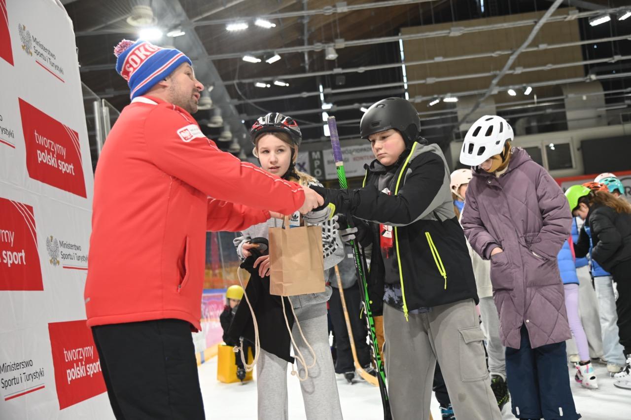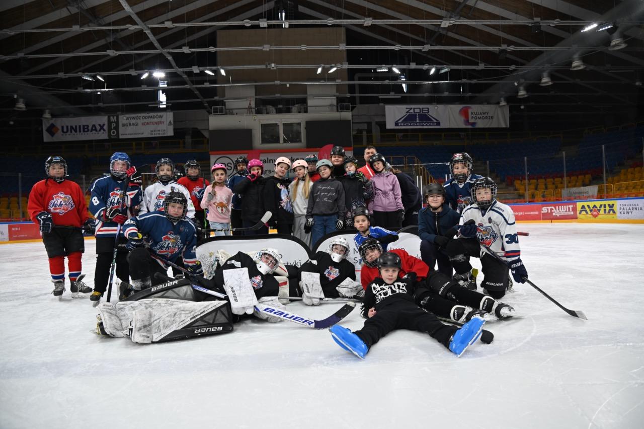 Podczas zajęć w ramach projektu „Hokej – gra dla każdego” nie brakowało emocji, uśmiechu i radości z gry. Każdy podanie, strzał czy mini-wyścig na lodzie był okazją do nauki fair play i współpracy w grupie. To doskonały przykład, że hokej łączy i sprawia, że sport staje się prawdziwą przygodą.